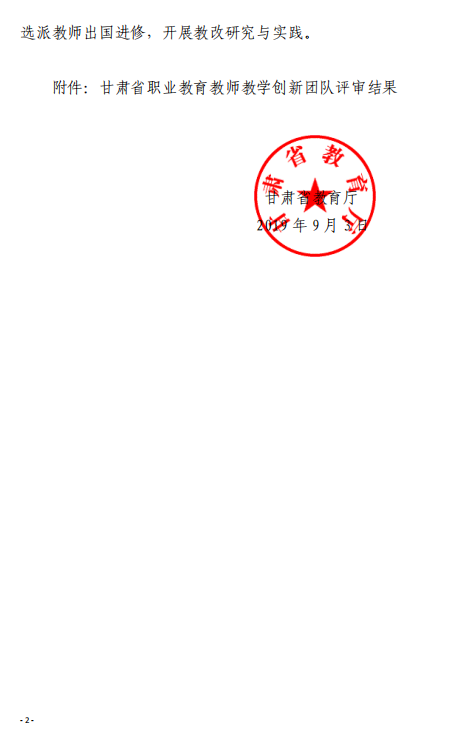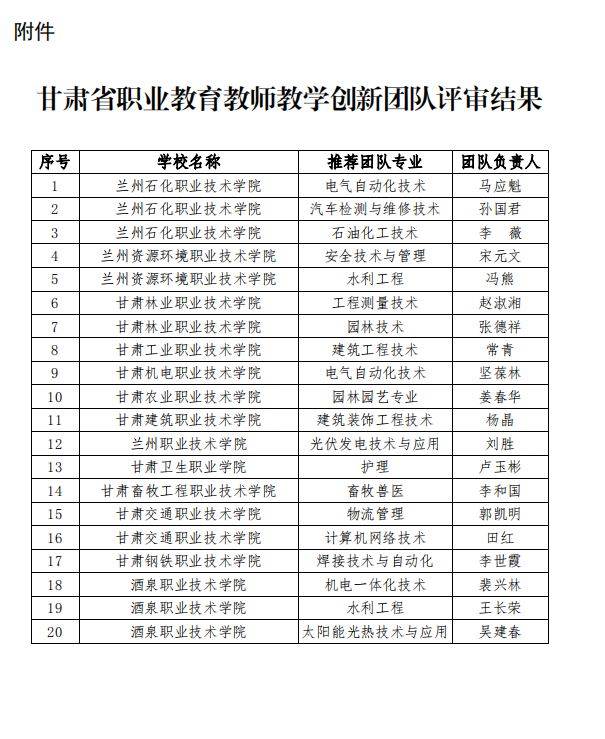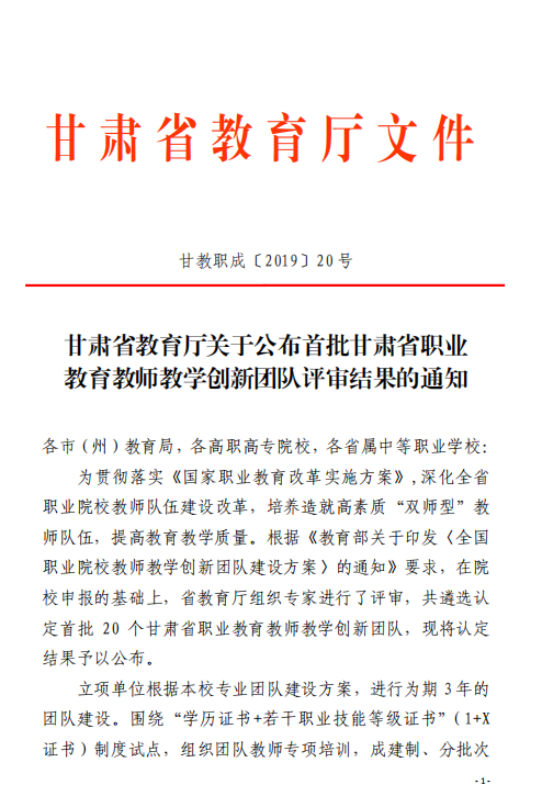 甘肃省教育厅关于公布首批甘肃省职业教育教师教学创新团队评审结果的通知-正文.pdf