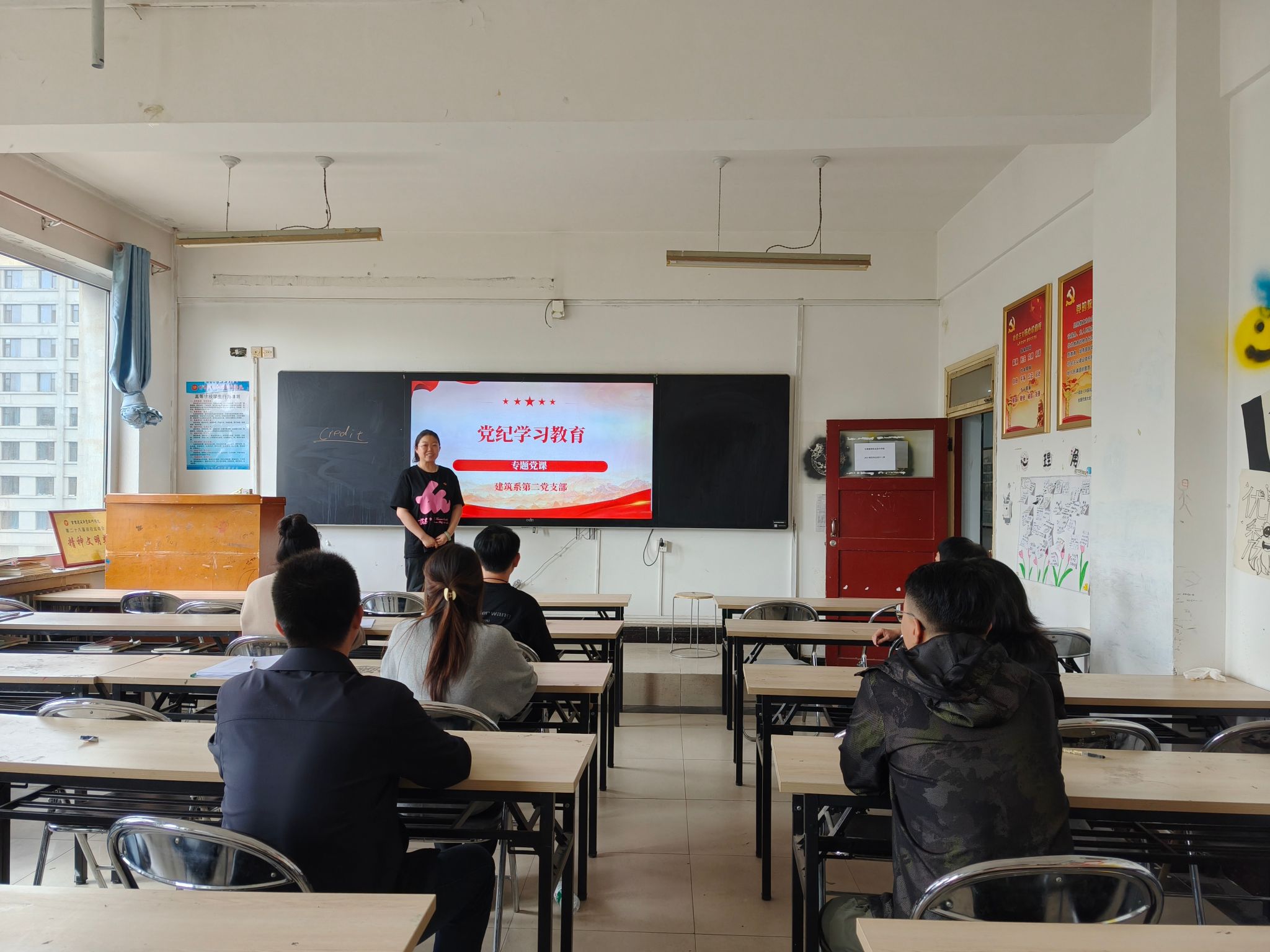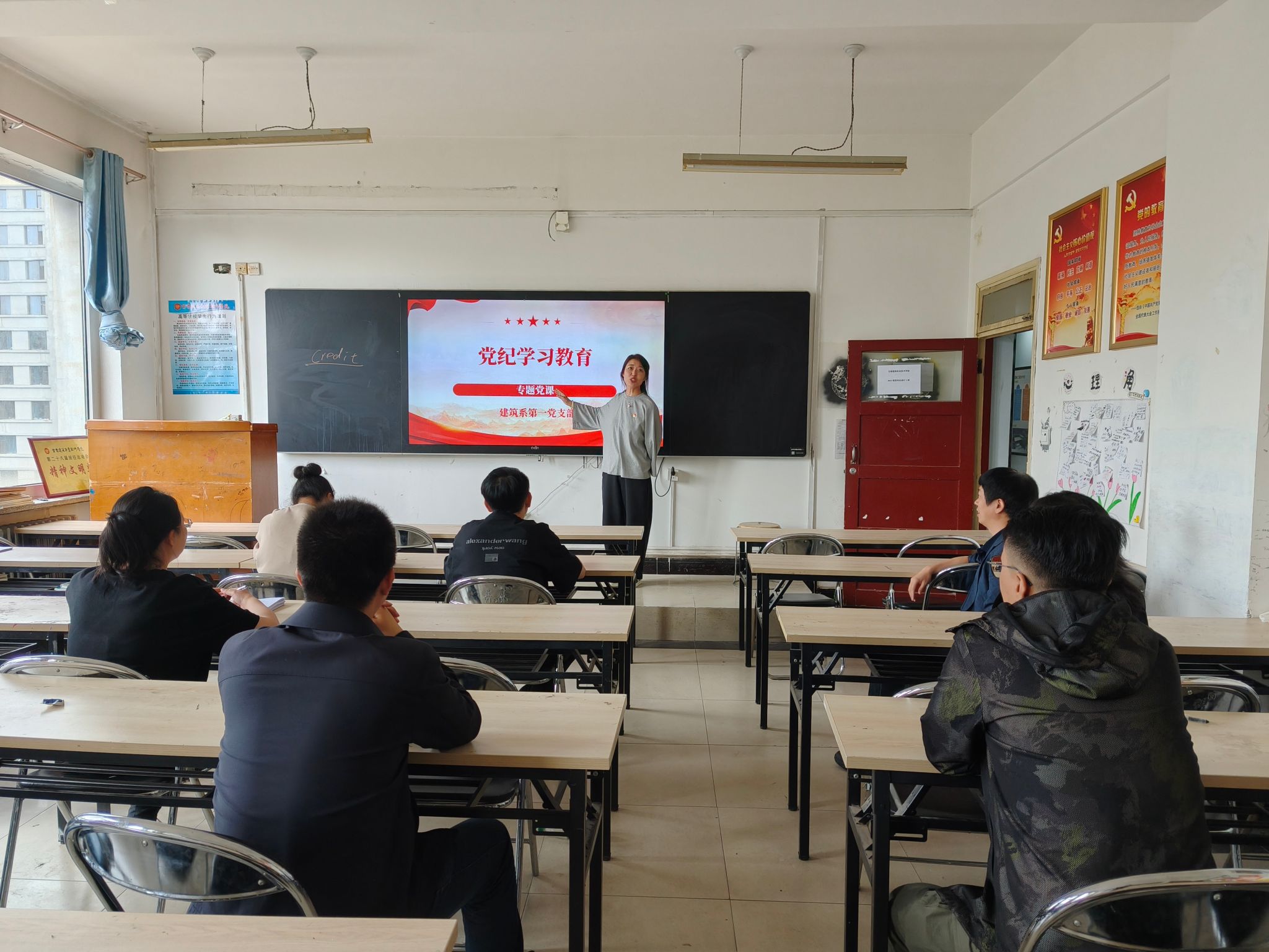 为深入学习贯彻习近平总书记关于党纪学习教育的重要讲话和重要指示精神,推进党纪学习教育走深走实,进一步提高全体党员政治自觉、思想自觉和行动自觉。6月6日,建筑系第一党支部书记王杨、第二党支部书记李洁分别围绕《中国共产党纪律处分条例》内容,为两个支部的党员讲授专题党课。