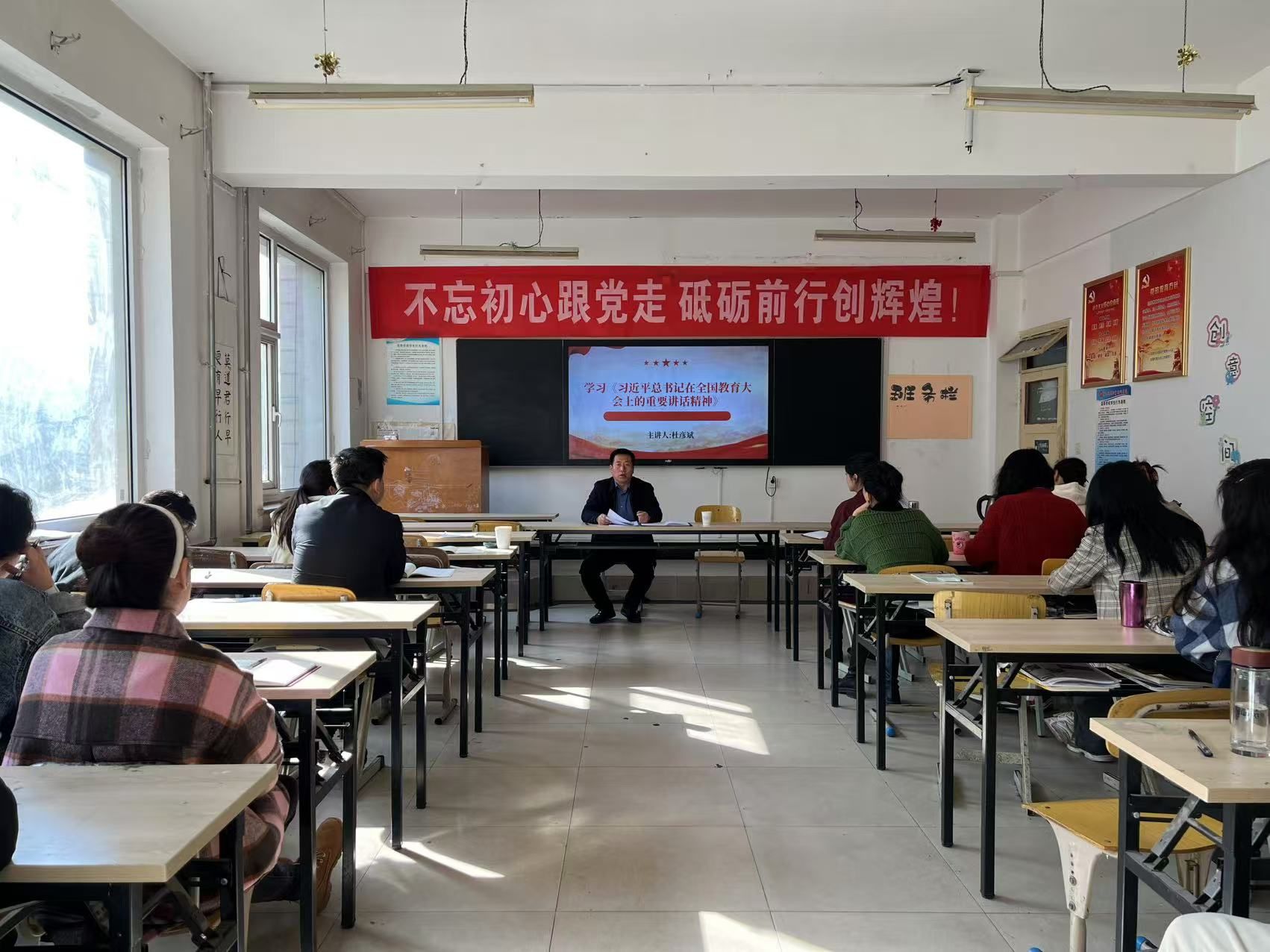 会议第二项杜彦斌带领全体教师围绕习近平总书记在全国教育大会上重要讲话精神、习近平同志《论教育》等开展了专题学习。杜彦斌表示,习近平总书记的重要讲话全面总结了新时代教育事业取得的历史性成就、发生的格局性变化,系统阐释了教育强国的科学内涵和基本路径,深刻阐述了教育强国建设要正确处理好的重大关系,系统部署了全面推进教育强国建设的战略任务和重大举措,为加快建设教育强国指明了前进方向。参会人员一致表示,把学习宣传贯彻习近平总书记在全国教育大会上的重要讲话和大会精神,作为当前和今后一个时期的重大政治任务,把学习贯彻重要讲话精神、大会精神与学习贯彻党的二十届三中全会精神、学习宣传习近平总书记《论教育》贯通起来,进一步强化使命担当,在深入学习、研究阐释、真抓实干上下功夫,落实立德树人根本任务,全力推进学院事业发展。