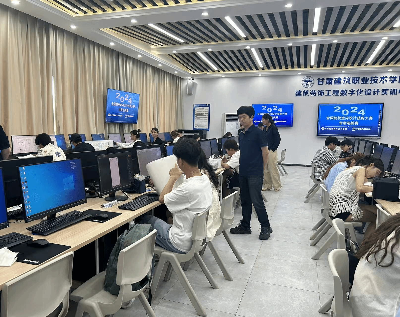 2024年6月29日,由中国室内装饰协会主办,甘肃建筑职业技术学院承办的2024年全国院校室内设计技能大赛甘肃省选拔赛在线上和线下同时如期举行。经前期甘肃各院校校赛选拔,共有4所院校的21支参赛队(合计42名选手)进入甘肃省选拔赛决赛。