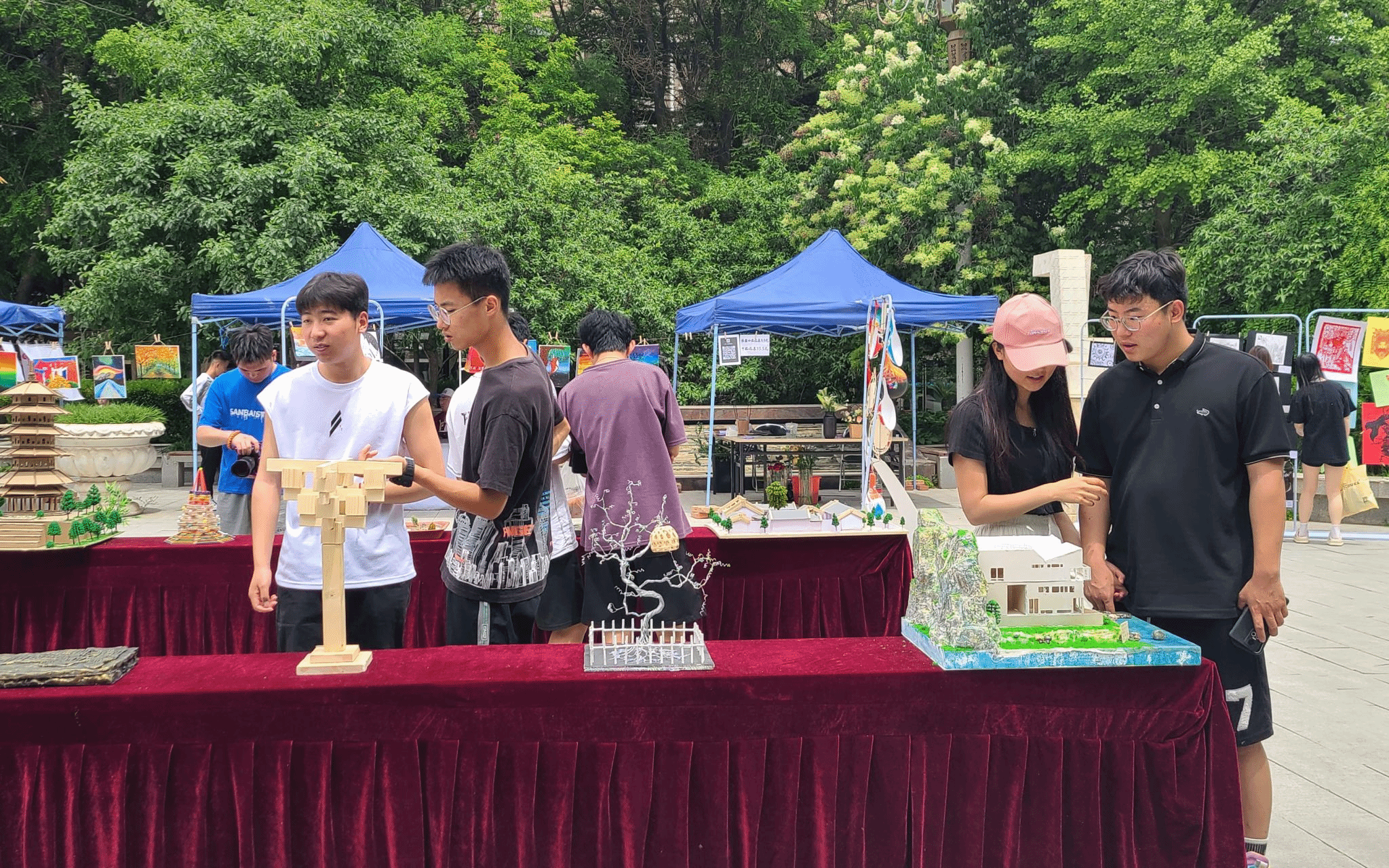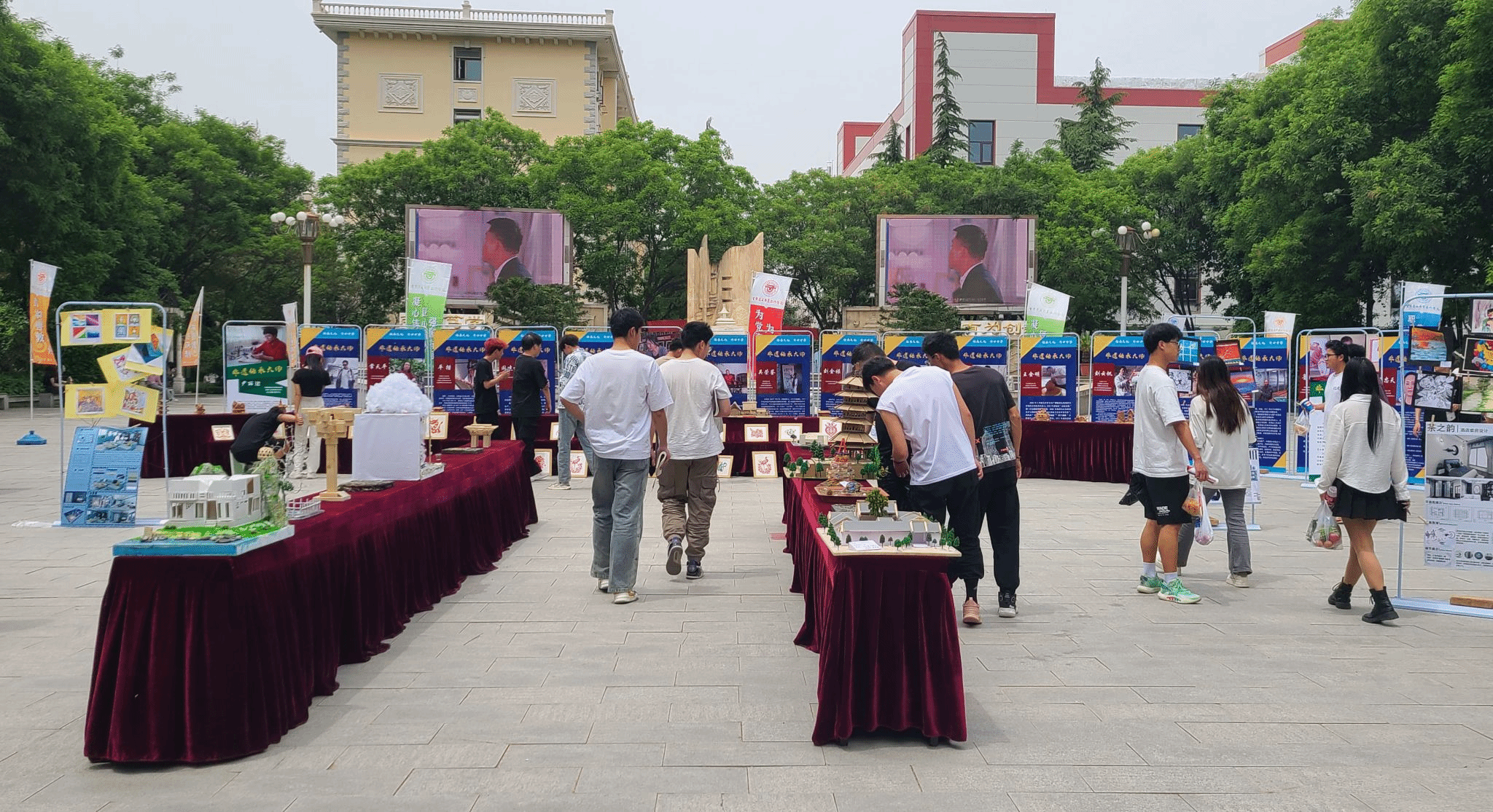 5月17日,我系在校园文化广场组织职教宣传作品展出及技艺展示活动。本次技能技艺展以“传承匠心,创筑未来”为主题,弘扬大国工匠精神。参展作品包括建筑方案效果图展示、建筑模型制作、学生非遗技能拓展三大模块160余幅作品。非遗技艺展示包括花艺设计制作、茶艺展演、掐丝珐琅设计制作、漆扇漂染等传统技艺。