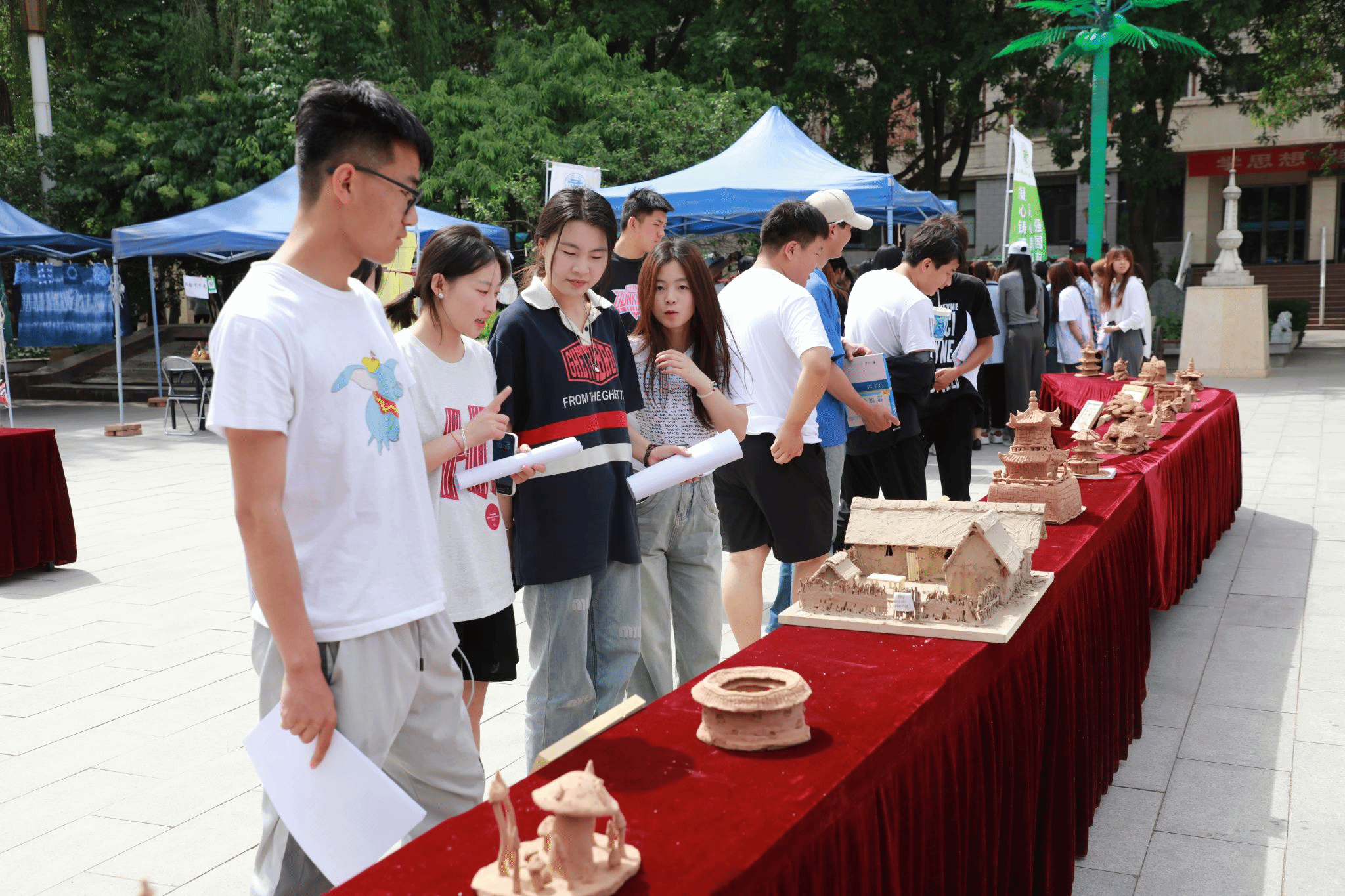 本次活动重在展现我国优秀的传统文化技艺,诸如扎染、漆扇、剪纸、泥塑、掐丝珐琅、京剧脸谱、葫芦雕刻等,是对建筑设计类学生素质拓展与专业素养提升的一次综合检验。