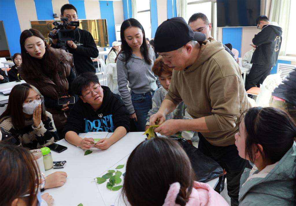 随后,赵贵琦老师向大家介绍了蓝晒工艺。讲解了蓝晒的发展历史和制作工艺流程,讲解完之后,他指导学生进行蓝晒作品的创作,同学们以不同的植物为素材,制作了唯美的蓝晒作品。最后,赵贵琦老师还分享了拍照的一些技巧和对摄影艺术的认识。