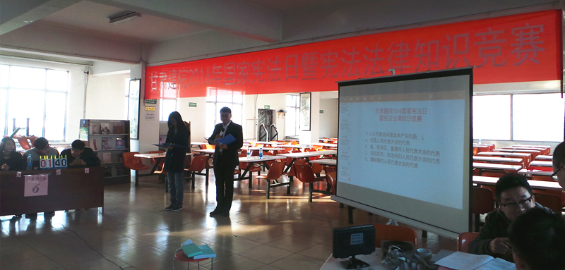 为贯彻落实《省教育厅关于转发教育部全国教育普法领导小组办公室做好2016年国家宪法日暨教育系统宪法学习日活动的通知》精神,弘扬宪法精神,树立宪法权威,普及法律知识,构建法治校园,12月8日下午,学院在阅览室举办了2016年国家宪法日暨宪法法律知识竞赛活动,活动由保卫处、建筑系承办。学院副院长谢钢、以上二系、处相关领导、教师代表和各系学生代表共计260余人参加了活动。