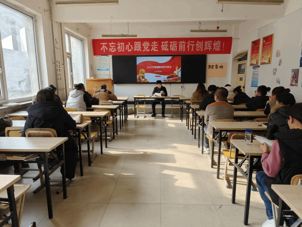 孙来忠强调,要大力弘扬“崇德守规 实干争先”的精神,以“德”为魂,以“规”为体,做到崇尚师德,遵规守矩,自觉践行师德规范,守教育初心,筑师德底线,以严谨的学风、深厚的专业素养,树立起良好的职业形象。同时,坚持问题导向原则,解决师生共同反映的突出问题,以解决问题为标准论成效;坚持严管厚爱原则,纠正评价不合理现象,公平对待每一位老师。师德师风建设要落实在具体教育教学行为中,坚持培育共同价值观,树立共同行为规范,变被动管理为自我约束,营造健康和谐的校园文化氛围。大力弘扬教育家精神,争做新时代党和人民满意的‘大先生’,做有理想信念、有道德情操、有扎实学识、有仁爱之心的传道者。