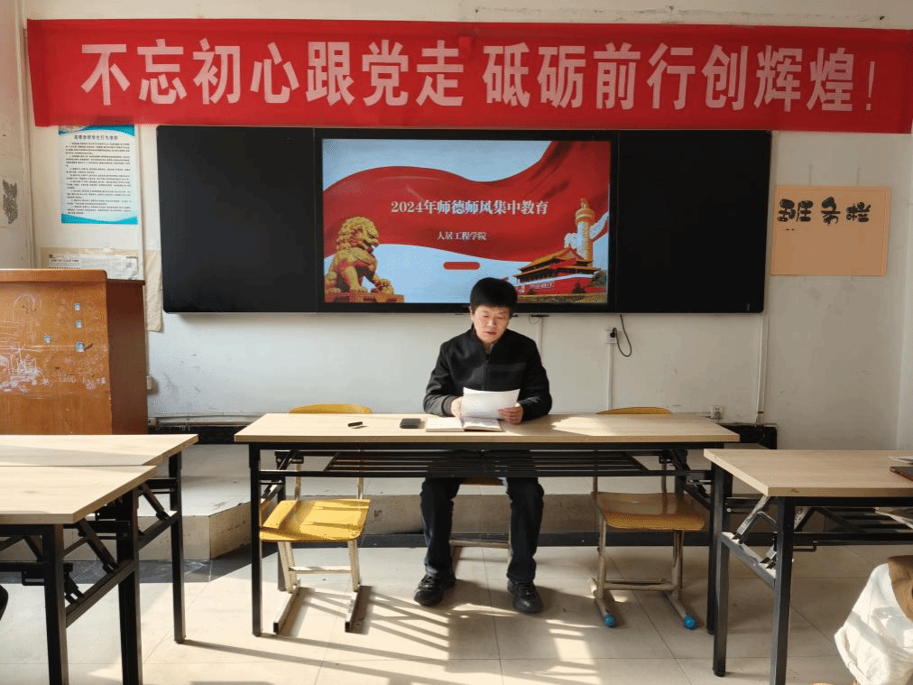 12月12日,人居工程学院在2号楼教学4-5教室开展师德师风集中教育学习。会议由人居工程学院院长孙来忠同志主持,全体教职工参加了教育学习。会上孙来忠院长领学了《新时代高校教师职业行为十项准则》《“四有”好老师》以及教育家精神。并结合学院“十五五”规划、教师成长以及工作实际,强调了师德师风的重要性。