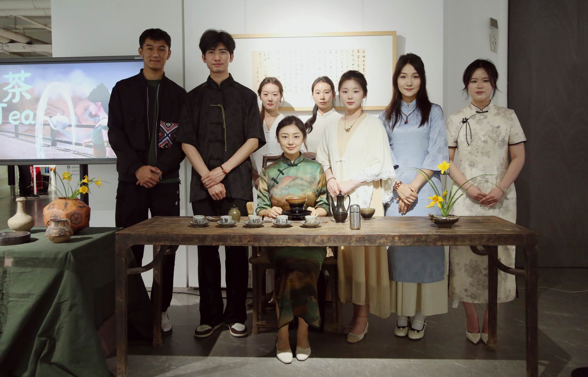 交流活动现场,省级茶艺技能大师蔡萍团队以“七汤点茶法”再现宋代《大观茶论》精粹。茶筅击拂间,茶沫渐起,展现出“疏星皎月”之象,这项古老的技艺,在数字技术的赋能下焕发新生。工作室研发的人工智能系统“弱水”以茶文化传播大使的身份,将茶百戏中“水丹青”的哲学意蕴转译为当代艺术语言,实现深度文化对话。吴若兰大使被这一独特的茶艺展演深深吸引,她专注地观看每一个步骤,不时点头称赞,对宋代点茶和数字人“弱水”表现出了浓厚的兴趣。