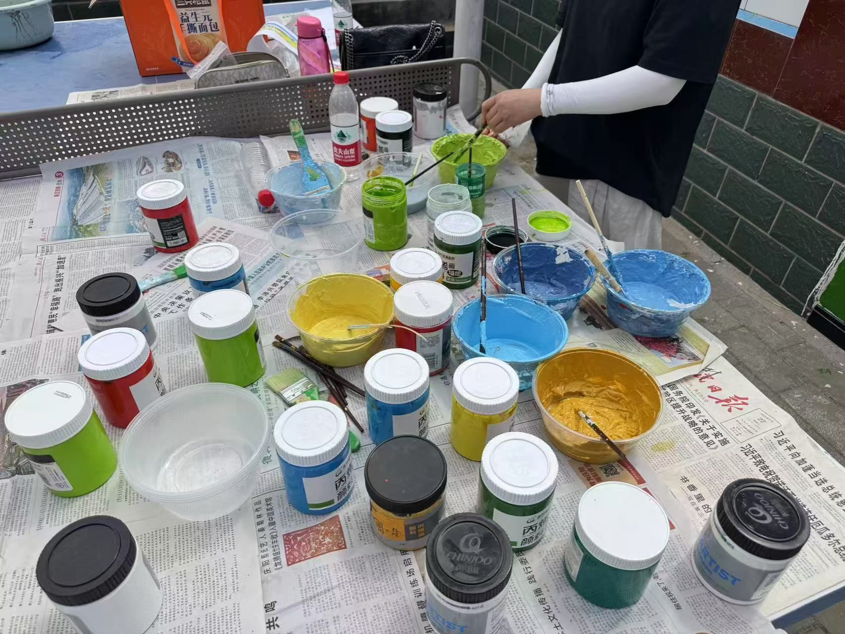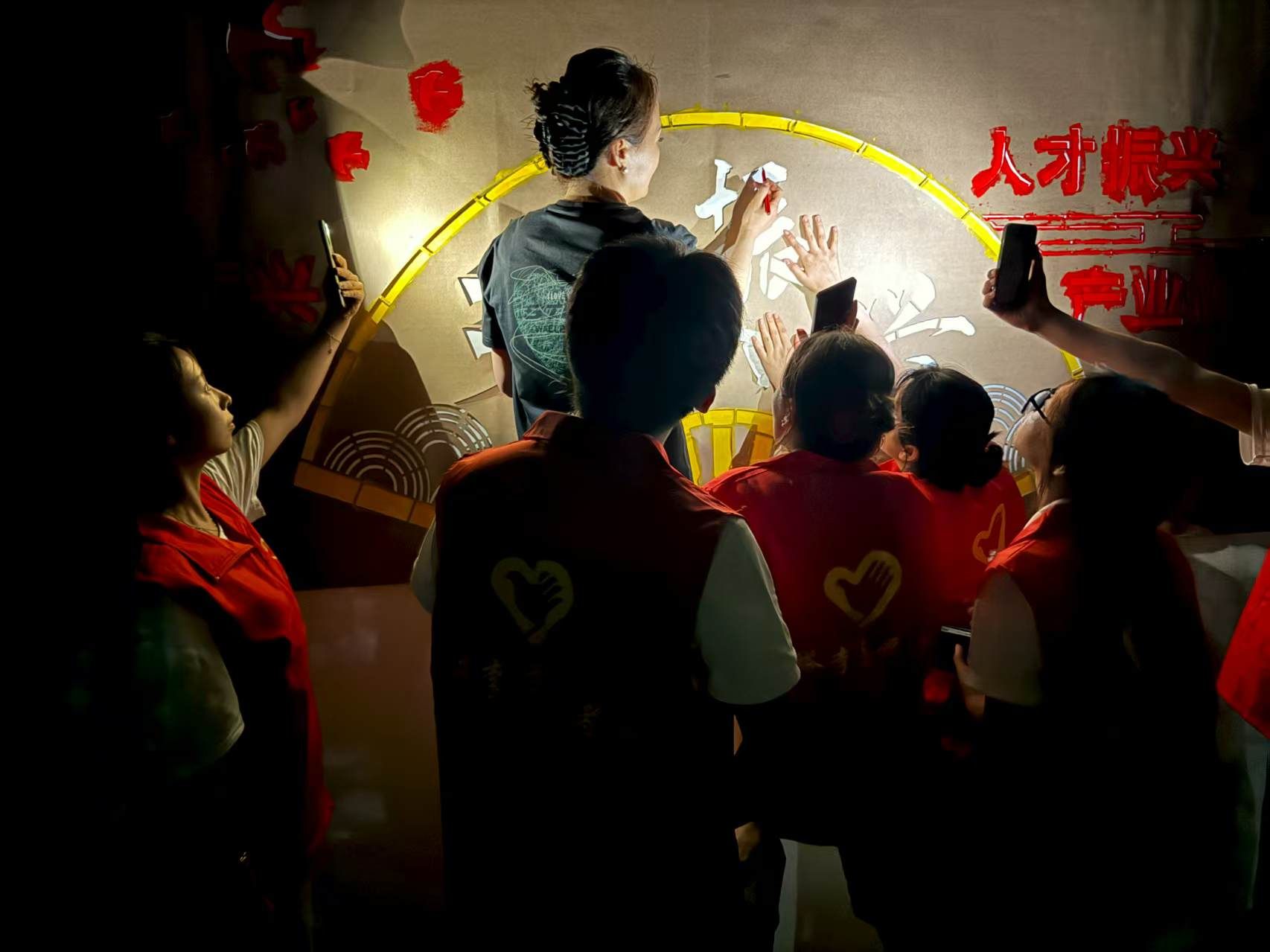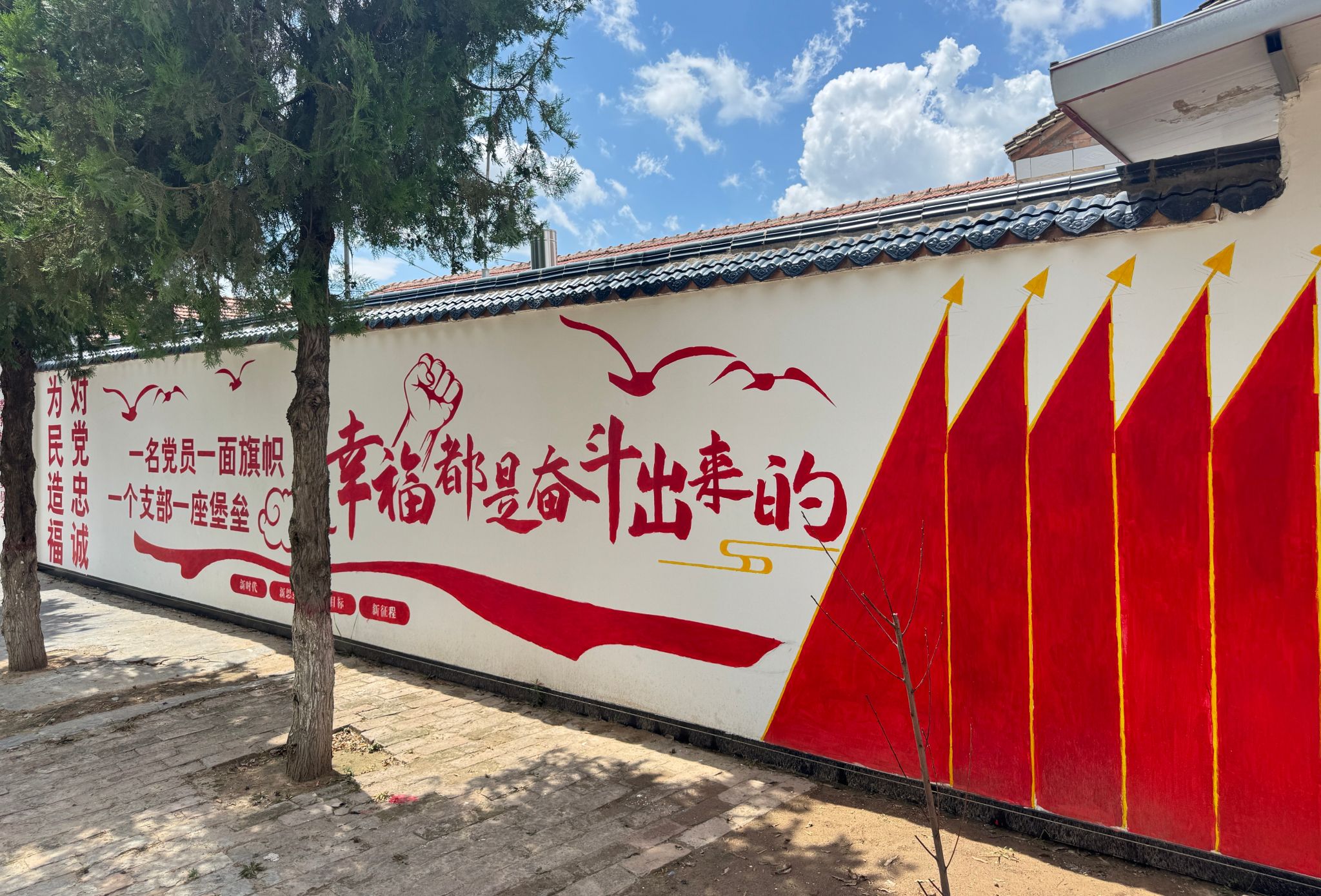 在绘制墙绘的过程中,村民们也被队员们的热情和专注所感染。一开始,村民们只是好奇地围观,看着这群年轻的身影在墙上忙碌;渐渐地,一些村民主动送来了清凉的茶水和解暑水果,并时时驻足观赏、点赞夸奖声不断,关切地询问队员们累不累;还有的村民自告奋勇地帮忙递工具,虽然不太懂绘画的技巧,但他们的热情和支持让队员们倍感温馨。一位大爷感慨地说:“你们这些娃娃,大老远跑来,为我们村子画画,真的太感谢你们了。”这些质朴的话语,更加坚定了队员们完成墙绘的决心,让深深体会到付出的意义与价值。