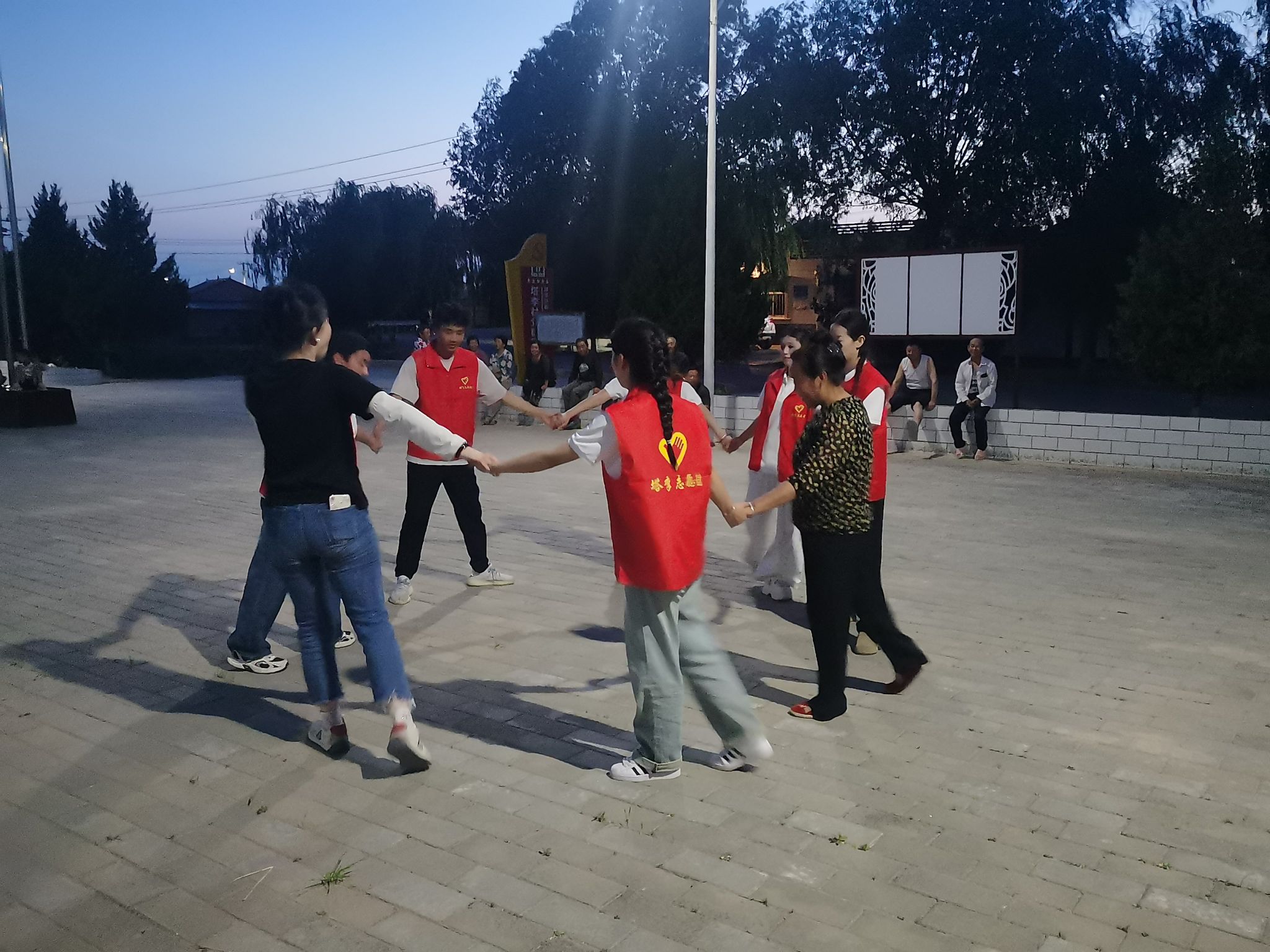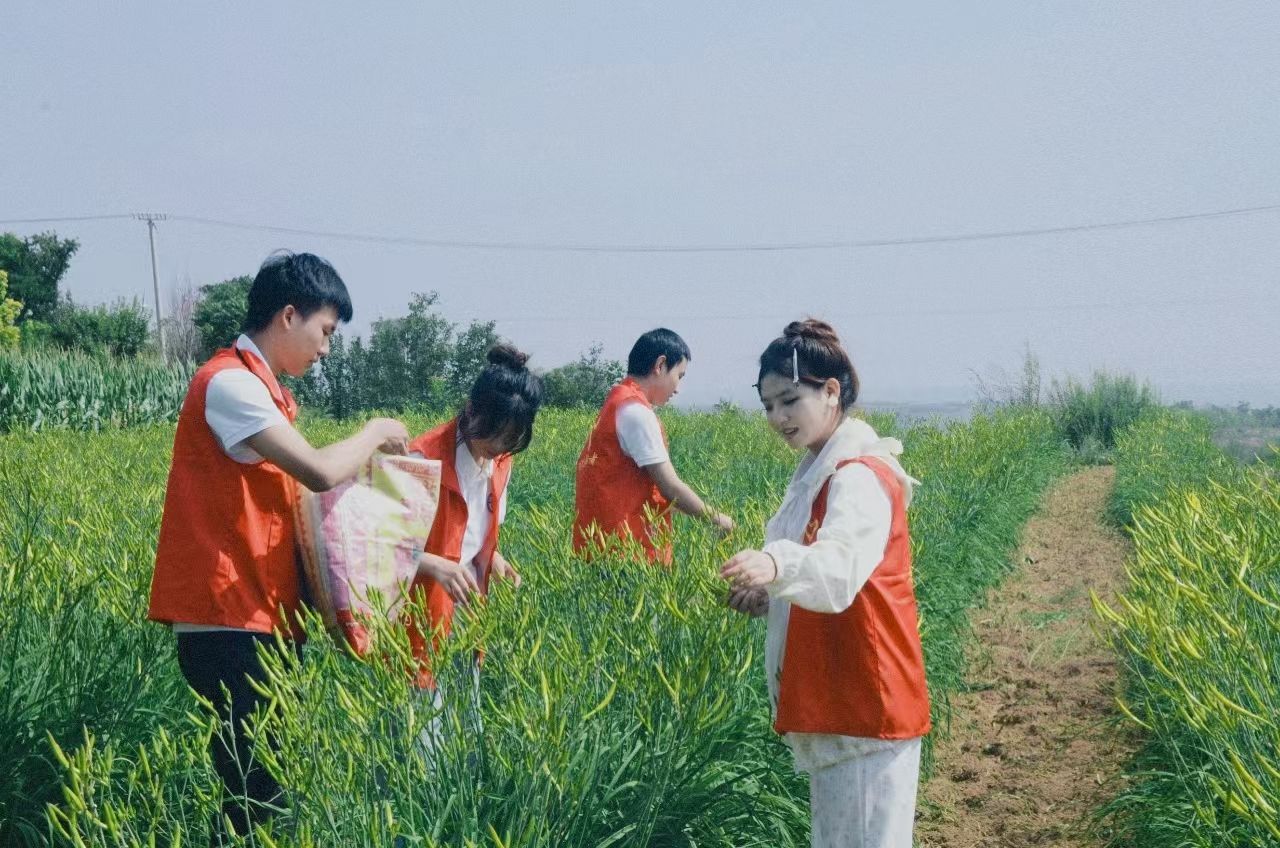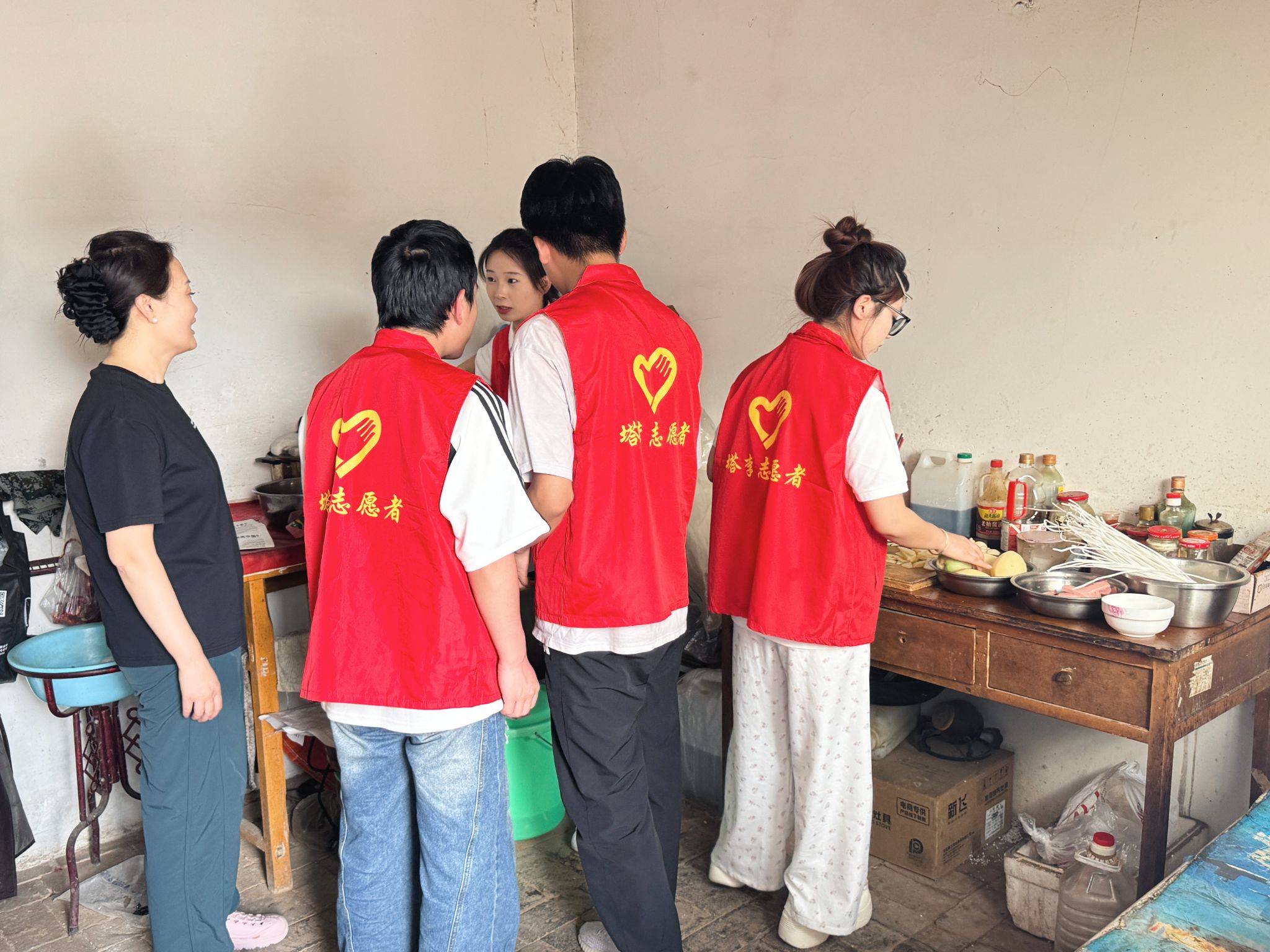 除了墙绘,队员们还利用阴雨天或休整日开展了一系列丰富多彩的实践活动。7月12日,队员们化身为“环保小卫士”,在广场上清扫杂草和杂物,让原本杂乱的广场变得整洁敞亮;在村道旁的绿化带,小心翼翼地拔除杂草,呵护着幼苗的成长;走进农家厨房,变身“大厨”,为村里的孤寡老人烹饪美味佳肴,在饭菜的香气中传递温暖与关爱;傍晚时分,带领乡亲们跳锅庄舞唱名歌,欢声笑语让塔李村更加热闹温馨。