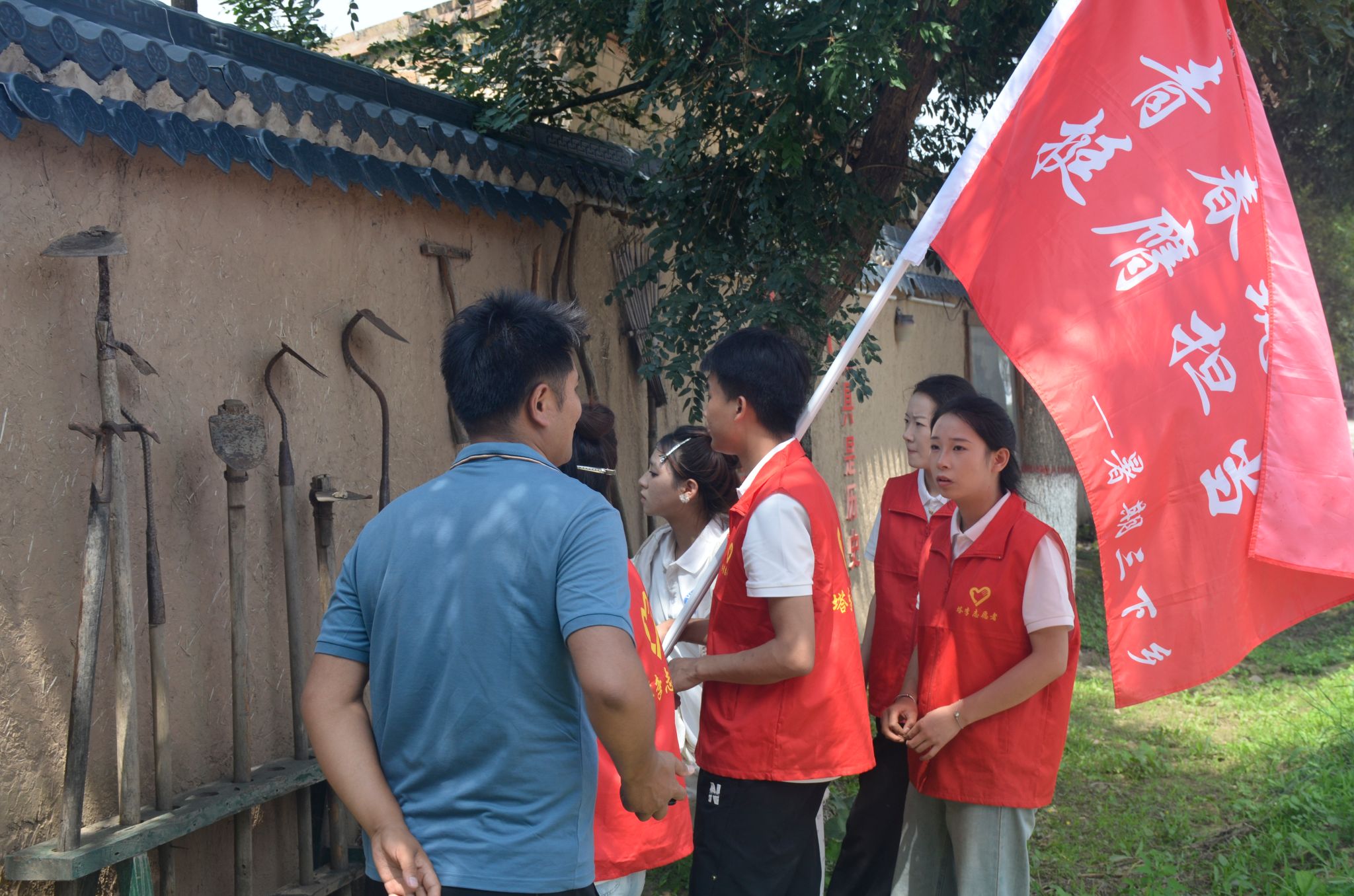 劳作间隙,学院驻村书记赵志强老师特意带队员们参观了村庄传统农具博物馆。犁、耙、镰刀、簸箕……这些带着岁月痕迹的老物件,在他的讲述中变得鲜活——从人工耕作到半机械化种植,农具的变迁里藏着乡村发展的脉络。队员们一边触摸农具,一边听着背后的故事,对乡村生产生活的认知愈发立体。