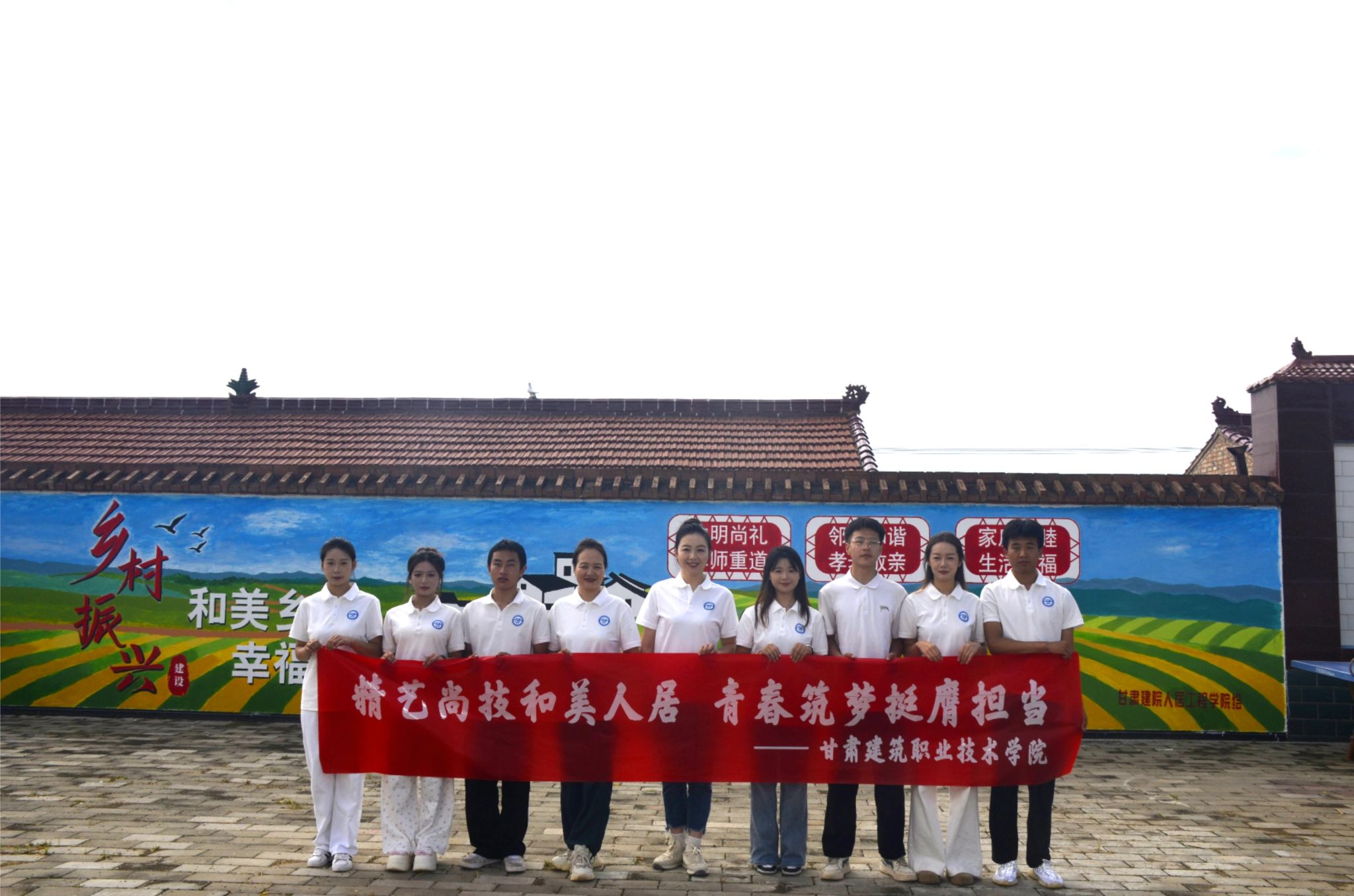 此次“三下乡”实践活动,是甘肃建筑职业技术学院实践育人的重要组成部分。队员们用实际行动,在塔李村这片充满希望的土地上,诠释了青春的使命与担当,尤其6面凝聚着大家心血与汗水的墙绘作品,将成为乡村振兴道路上的一道独特风景。青春筑梦,初心如磐;挺膺担当,使命在肩。建院学子们将继续秉持中国式现代化的挺膺担当,将青春绽放在乡村振兴的伟大征程中!
