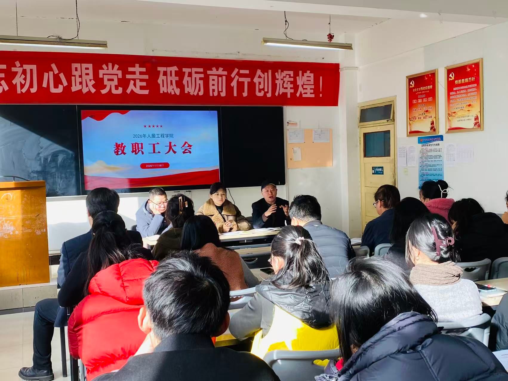 为进一步凝聚共识、总结过去、规划未来,全面推进学院高质量发展,人居工程学院于1月18日在2号教学楼4-2室召开教职工大会。学院全体教职员工齐聚一堂,共同回顾总结过去一年的奋斗历程与丰硕成果,谋划部署新一年的发展蓝图。